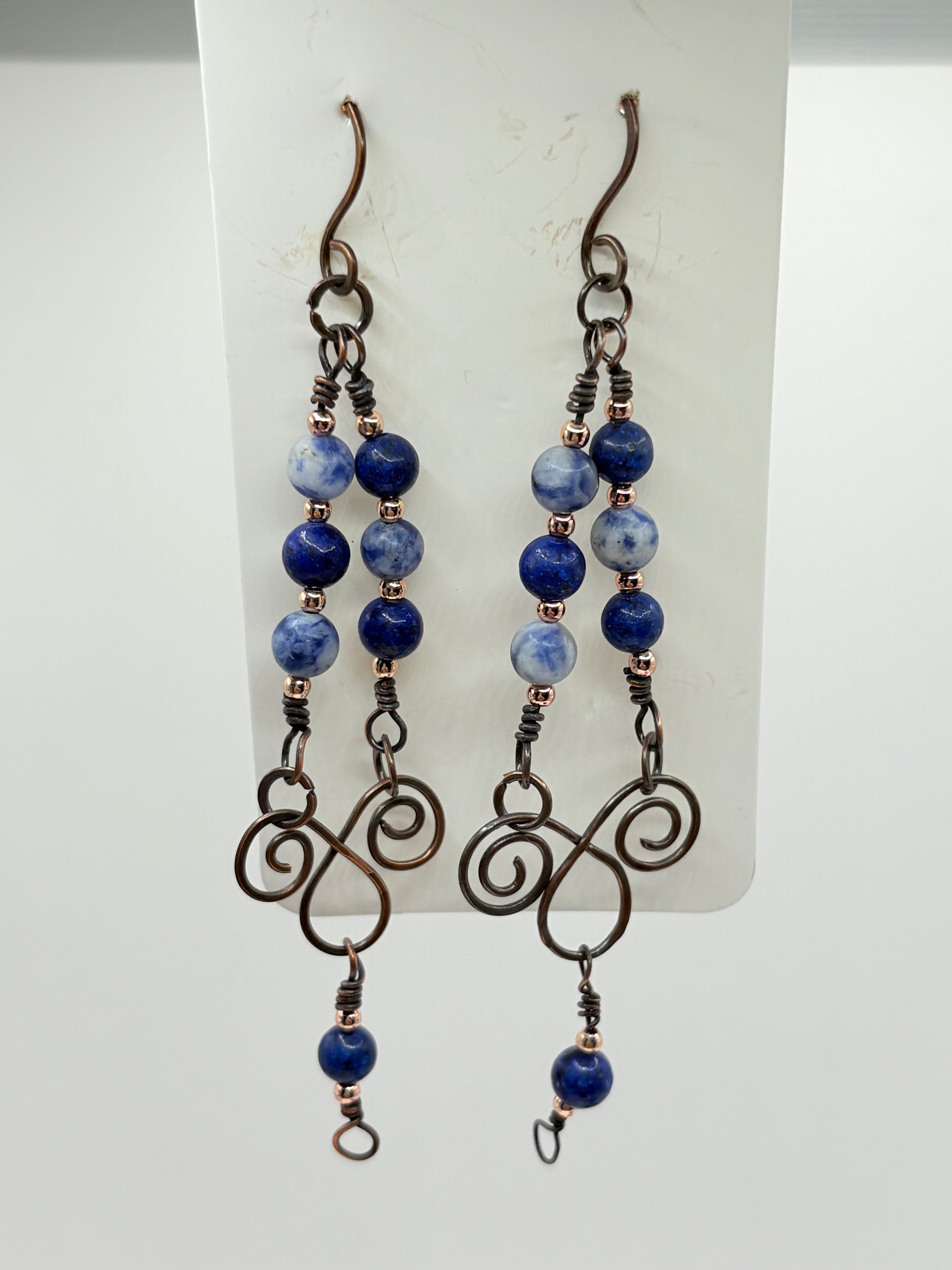 Elevate your style with our stunning chandelier earrings featuring rich copper tones and delicate blue glass beads. Perfect for dressing up your denim or adding a touch of elegance to any outfit. The earwires are coated with ProtectaClear to prevent discoloration and protect sensitive skin, ensuring lasting beauty and comfort. Make a statement with this gorgeous jewelry piece that combines boldness and sophistication.